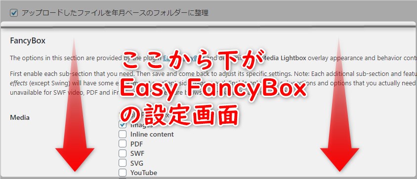 Easy FancyBox の設定は、通常のワードプレスプラグインと違いメディアの設定画面から行います。