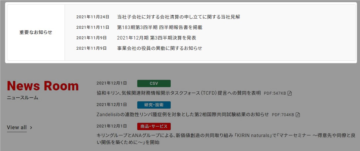 コーポレートサイト(企業サイト)なんかでよく見る「お知らせ欄」。